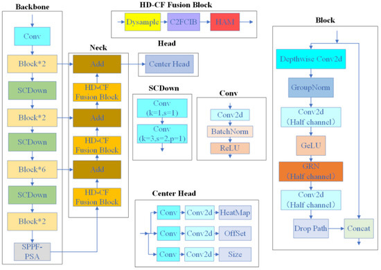 Figure 2, we propose SC-AttentiveNet, a novel network inspired by the CenterNet architecture. This design consists of a backbone for feature extraction, a neck for feature fusion, and a head for final recognition.