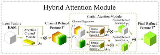Assuming an input feature map F with dimensions H × W × C, the first step of the HAM module is to generate a one-dimensional channel attention tensor A