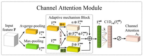 Cadd output by the adaptive mechanism module is activated after a series of convolutions using the Sigmoid function on the output feature tensor. In short, the computational process of the CAM module can be summarized in the following Equation (10):