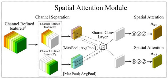 S,2max are, respectively, subjected to join operation to generate a pair of feature descriptors. Subsequently, the concatenated feature descriptors are subjected to a convolution operation through a 7 × 7 shared convolutional layer to obtain a pair of 2D attention maps. Finally, spatial attention maps A