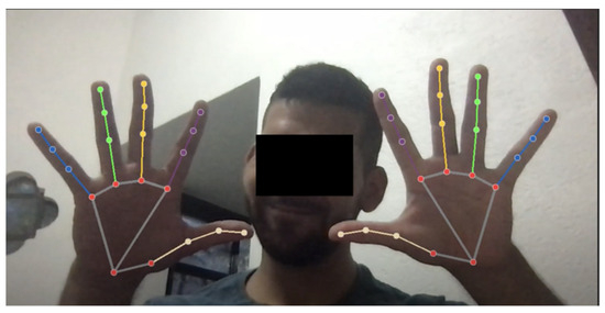 Detecting the human pose has become a prolific area of research in light of the groundbreaking work conducted by [22]. As a result of their pioneering efforts, numerous scholarly articles have emerged on the topic. Among the algorithms focusing on hand detection and alterations when movement appears that have proven to have greater detection accuracy is MediaPipe, developed by Google researchers [23], which is an ML pipeline for hand tracking and gesture recognition. Instead of employing direct and comprehensive hand detection, the approach involves the detection of the palm. The results indicate that the method yielded an average accuracy of 95.7% in palm detection using a standard cross entropy loss without a decoder, with a baseline accuracy of 86.22%.