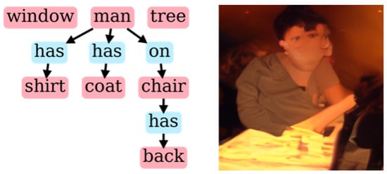 - Johnson, J.; Krishna, R.; Stark, M.; Li, L.J.; Shamma, D.A.; Bernstein, M.S.; Fei-Fei, L. Image retrieval using scene graphs. In Proceedings of the 2015 IEEE Conference on Computer Vision and Pattern Recognition (CVPR), Boston, MA, USA, 7–12 June 2015; pp. 3668–3678. [Google Scholar] [CrossRef]