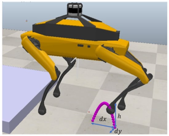 Leg trajectory illustration depicting the parabolic swing motion of the robot’s leg during locomotion.