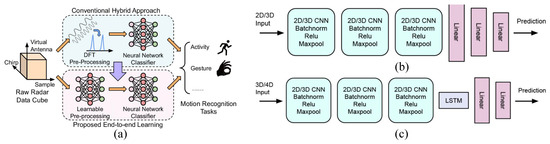 - Zhao, P.; Lu, C.X.; Wang, B.; Trigoni, N.; Markham, A. Cubelearn: End-to-end learning for human motion recognition from raw mmwave radar signals. IEEE Internet Things J. 2023, 10, 10236–10249. [Google Scholar]