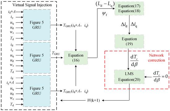 - The partial derivative information of torque to current vector angle calculated by the LMS algorithm and virtual signal injection is used to adjust the internal parameters of the neural network in real time, which solves the problem of fixed network parameters after traditional offline training and enhances the robustness and prediction accuracy of the network.