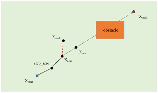 When represents the predefined target-point bias probability, employing the target bias strategy can efficiently and quickly correspond to the target point, as illustrated in Figure 2.