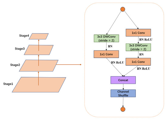 In order to accurately extract feature information of four channel tongue images with fewer network parameters, the ShuffleNet [17] network is used as the backbone layer to extract tongue image features. The feature extraction blocks of each layer in the backbone are shown in Figure 3.