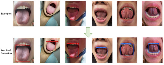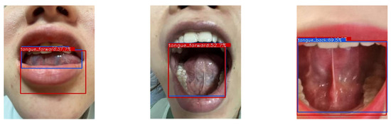 In static tongue detection, there are some cases of recognition errors, mainly due to the similarity between the color of the patient’s lips and the color of the lingual region, or the similarity between the color of the lingual and the sublingual regions. This situation may result in image detection recognizing both the lingual and sublingual regions simultaneously. Therefore, in future work, we will collect more images in different environments, such as environments with stable or unstable illumination. And, it is necessary to further improve the feature extraction module of the model to enhance the differentiation of fine-grained features between the lingual and sublingual regions and the lips. During the training process, it is also necessary to add more targeted examples of abnormal situations to improve the accuracy of the detection model.
