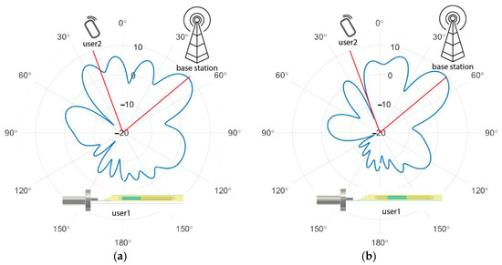 Radiation patterns of single-channel liquid-metal-based FAS at different radiation positions [36] when the liquid metal radiator is located at (a) 0 mm and (b) 3 mm from the beginning of the liquid channel.