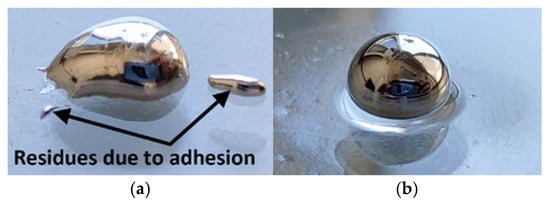 (a) Residues of oxidized Galinstan, (b) Galinstan in diluted hydrochloric acid.