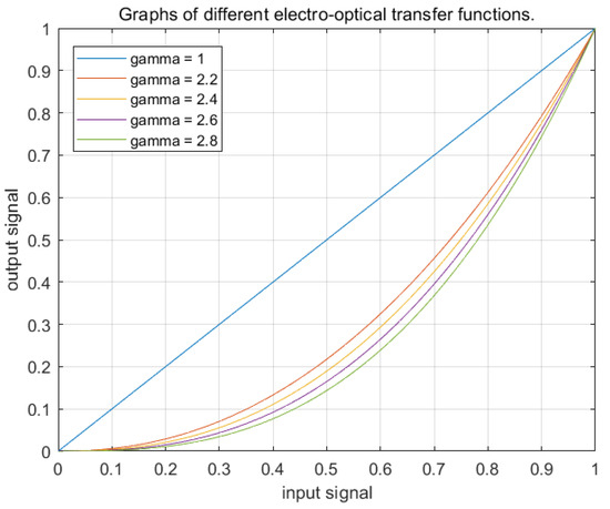 The values of the D(gamma) function under different electro-optical transfer functions.