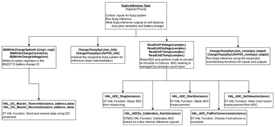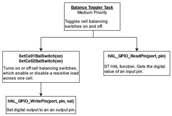 - When the counter’s value is below the balancing duty cycle assigned to each cell by the fuzzy inference task, the respective cell’s balancing switch is activated. Otherwise, the switch is deactivated.