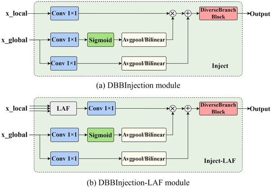 Architecture of the injection module: (a) DBBInjection; (b) DBBInjection module with LAF.