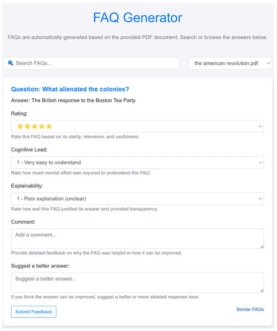 The study successfully met the objectives outlined in Section 1.2. Specifically, the design and implementation of a context-aware IQAS was validated through its high performance on both factual and inference-based queries, confirming its effectiveness in interpreting and addressing diverse student questions. Furthermore, our targeted approach to improve the system’s ability to handle complex and nuanced queries is reflected in strong token-level performance metrics and inference capabilities. The efficacy of the automated FAQ generation tool, validated by expert evaluation, further confirms its practical contribution to personalised learning and the efficient creation of educational content. The seamless integration of both components into a unified framework, supported by positive user experiences and rigorous offline evaluations, demonstrates the practical viability of this integrated approach in authentic educational settings.