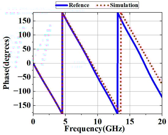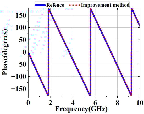 The comparison results of the directly simulated value and the phase delay calculated by the static formula are displayed in Figure 6, where it can be seen that these two values match well in the low-frequency range, but there is a significant phase difference in the high-frequency range. This phenomenon arises from the nonlinear variations in the equivalent dielectric constant value under high-frequency conditions, which indicates the application limitations of traditional static formulas in high-frequency application scenarios.