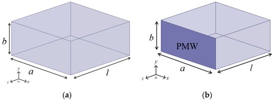 Configuration of the dielectric-filled resonator. (a) All surfaces are modeled as PEWs. (b) All surfaces are modeled as PEWs, except for the PMWs indicated.