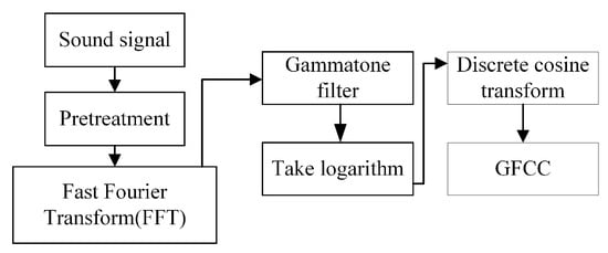 As shown in Figure 4 above, the GFCC feature extraction process is similar to that of MFCC feature extraction, with the main difference being the filter bank used. The Gammatone filter used in this process is described below.