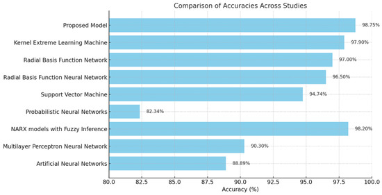 Table 11 presents a detailed evaluation of photovoltaic defect detection research. Each table entry describes the technique, data type, accuracy, and defects found during the investigations. Starting with the methodology, Artificial Neural Networks, Multilayer Perceptron Neural Networks, NARX with Fuzzy Inference, Probabilistic Neural Networks, Support Vector Machines, Radial Basis Function Neural Networks, and Kernel Extreme Learning Machines are discussed. These methods demonstrate the variety of research methods used to handle PV system failure detection’s complexity, as shown in Figure 12 below.