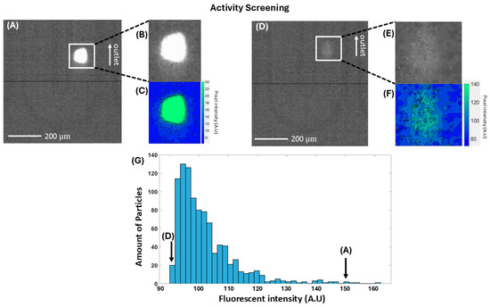 In Figure 5A–F, the fluorescence detection of FCC ECAT particles is shown, where the background intensity was determined at 90 (a.u.). Particles could be detected when they exhibited a fluorescence signal above this threshold. This means that particles that showed no fluorescence at all cannot be detected with this platform, which explains the drop-off in Figure 5G for the amount of particles at intensities just above the threshold.