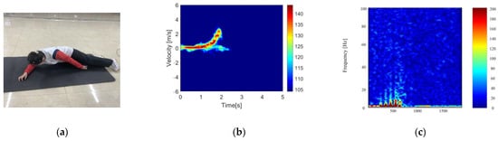 Here, R k ( t ) represents the time-varying distance from the body part to the radar. For typical walking actions, the micro-Doppler frequency shift caused by arm swinging can reach ±200 Hz, while a falling motion can produce a sudden frequency shift of 300–500 Hz.