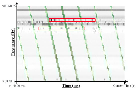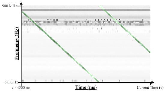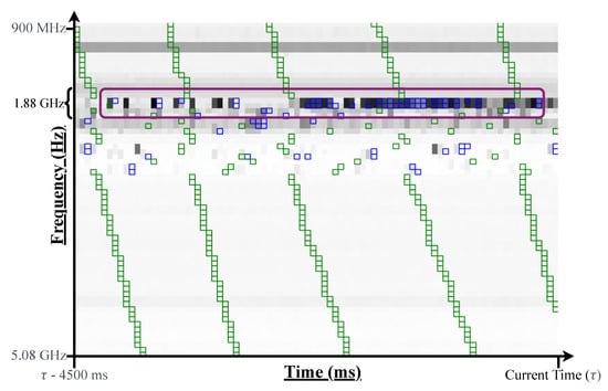 Figure 4 illustrates the naïve behavior of linearly sweeping with all the available radios. The static allocation of resources is unable to reliably detect low-probability-of-intercept signals that have shorter durations.