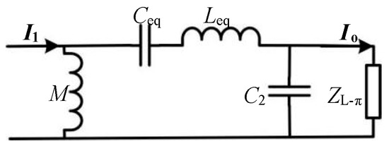 In accordance with Figure 2, the π-circuit consisting of L′p, M, Cs2, and C2 can further be represented, as in Figure 3, where the equivalent load ZL-π, consisting of the compensation inductor L2 and load R′L, can be expressed as (8).