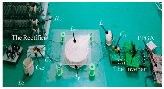 Based on Table 1, Table 2 and Table 4, a prototype of the DS-LCC compensation topology is shown in Figure 13. The main DC-AC full-bridge inverter comprises four MOSFETs with the manufacturer part number SPW47N60C3, and the secondary rectifier comprises four fast-recovery diodes with manufacturer part number MUR860T. The main electrical parameters of the MOSFET and fast recovery diode are shown in Table 6. The load is substituted by a variable resistor. Coupling coils are designed as the conventional round.