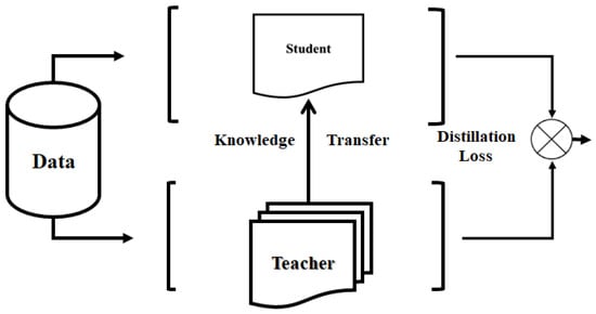 where and are the feature maps of the hidden layers of Teacher and Student respectively, the transformation functions and are usually applied when Teacher and Student have different shapes of feature maps, denotes the similarity function used to match the feature maps of Teacher and Student [41,44]. The type of feature-based knowledge varies between tasks and applications, such as feature representation, sharing parameters, knowledge amalgamation, parameter distribution, activation boundaries, feature maps, etc.