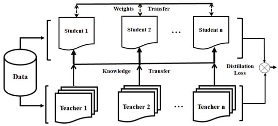 - Guo, Q.; Wang, X.; Wu, Y.; Yu, Z.; Liang, D.; Hu, X.; Luo, P. Online Knowledge Distillation via Collaborative Learning. In Proceedings of the 2020 IEEE/CVF Conference on Computer Vision and Pattern Recognition (CVPR’20), Seattle, WA, USA, 13–19 June 2020; pp. 11017–11026. [Google Scholar]