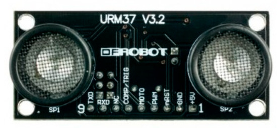 - URM37 V3.2 ULTRASONIC SENSOR, Description. Available online: https://www.botnroll.com/en/ultrasonic/473-urm37-v32-ultrasonic-sensor.html (accessed on 15 February 2024).