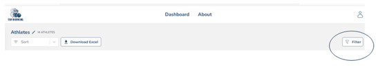 After pressing the “NEXT” button, a new screen is displayed, which shows the step tracking feedback. The user has to press the “CONNECT” button to connect to the Bluetooth of the IoT toolbox (Figure 11). Then, the user has to press the “START” button when the athlete begins his/her approach, and when the athlete completes his/her attempt, the “STOP” button must be pressed to display the feedback of the athlete’s metrics (Figure 12). More specifically, the presented feedback will be separated into three categories: