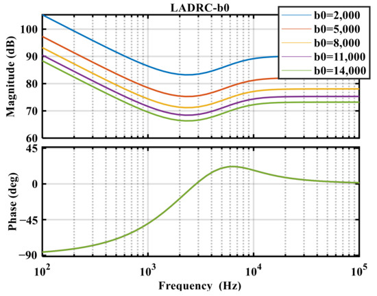It can be seen that the controller gain increases gradually with the increase of ω0. Take ω0 = 20,000; gradually increasing b0, plot the Bode as follows: