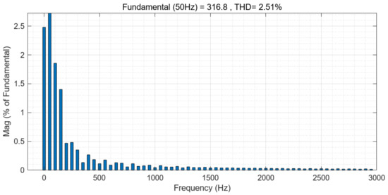 Figure 10, output harmonics THD = 2.51% < 5%, indicating that LADRC has a good suppression effect on harmonics in high-frequency inverter.