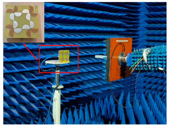 After parametric analysis, we obtain the optimal antenna simulation model and process the antenna prototype device on this basis. The near-field performance of the antenna is measured using a near-field darkroom, as shown in Figure 6. The measured phase distribution of the near-field amplitude is shown in Figure 7.