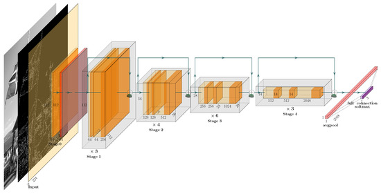 - He, K.; Zhang, X.; Ren, S.; Sun, J. Deep residual learning for image recognition. In Proceedings of the 2016 IEEE Conference on Computer Vision and Pattern Recognition, Las Vegas, NV, USA, 27–30 June 2016; pp. 770–778. [Google Scholar]