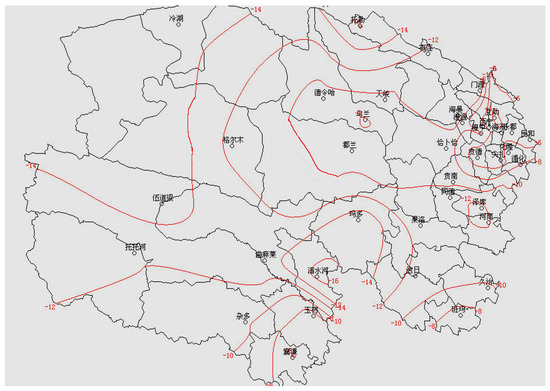 Qinghai region has a long and cold winter, the average temperature can reach −15 °C, the summer is relatively warm and cool, the isotherm generally has a closed loop structure, roughly consistent with the contour line, and the temperature vertical change is obvious. Prolonged low temperature affects the elasticity and flexibility of RTV coatings, making them brittle and prone to cracking. In addition, the Qinghai region has a plateau climate with a large daily temperature difference, with fluctuations of up to 25 °C or more, and the rapid change in temperature causes RTV coatings to undergo thermal expansion and contraction, resulting in microcracks and accelerating the aging process. Figure 1 below shows the distribution of average January temperatures in Qinghai Province.