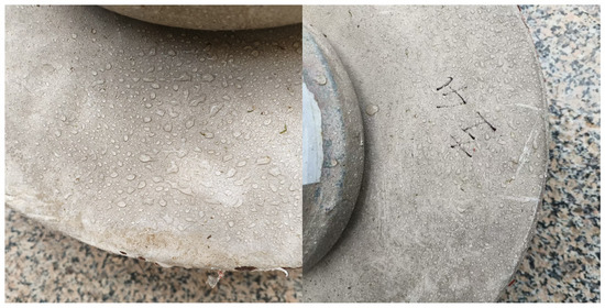 According to the standard JB/T 5892-1991 on the composite insulator boiling test, part of the RTV insulator specimens was placed in water containing 0.1% NaCl solution in the boiling box to ensure that the composite insulator was submerged in a depth of no less than 10 cm, heated to the boiling point temperature of the water solution, and boiling was maintained for 42 h; the water temperature naturally cooled to 50 °C, the specimen was removed from the water and washed, and an appearance check was immediately carried out on the specimen, respectively, to see whether the RTV coating on the insulator’s appearance showed peeling, cracking, or a peeling off phenomenon.