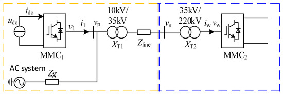 Figure 1 illustrates the architecture of the Renewable Energy Integration System using MMC-HVDC Transmission under weak grid conditions. Both the renewable energy grid-side converter and the MMC-HVDC sending-end converter use grid-following MMC, hereinafter referred to as MMC