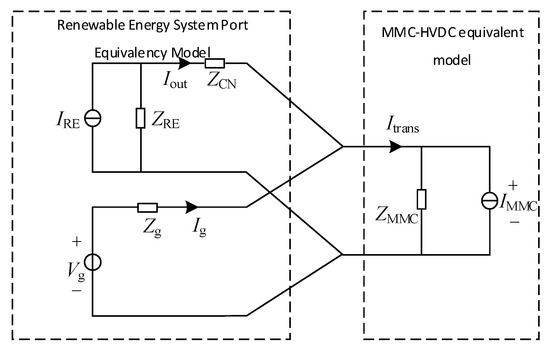 2. The renewable energy station interfaces with the PCC via a step-up conversion unit and AC transmission line, extending the conventional single-inverter grid connection topology to link with the converter station. Each variable is defined as follows: