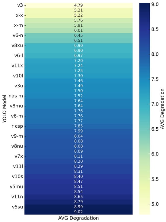 Recent research has increasingly focused on assessing and improving the robustness of YOLO-based object detectors, particularly under adversarial attacks and visual corruptions. Several studies have revealed the susceptibility of YOLO models to a wide range of digital adversarial attacks, such as FGSM, PGD, and C&W, from Jain [26], demonstrating that YOLOv5 can be easily misled in traffic sign detection. To better exploit YOLO’s structure, Dai et al. [27] proposed an Adaptive Deformation Method (ADM) targeting bounding box predictions, achieving higher attack success rates on YOLOv4 and YOLOv5. In parallel, Bayer et al. [28] introduced “eigenpatches”—PCA-derived adversarial patches—that efficiently fool YOLOv7 with reduced computational cost. Addressing the physical domain, Schack et al. [29] and Lian et al. [30] emphasized the real-world limitations of patch attacks and provided comprehensive benchmarks (e.g., PADetBench) to evaluate robustness under realistic environmental transformations. Beyond adversarial attacks, several works evaluated YOLO under image corruptions. Liu et al. [31] benchmarked detectors on COCO-C and BDD100K-C, showing that YOLO models generally handle common corruptions better than two-stage counterparts. In aerial vision, Arsenos et al. [32] found YOLOv5 and YOLOX to be particularly robust under simulated fog, rain, and blur, while Ding and Luo [33] introduced SDNIA-YOLO, enhancing detection under extreme weather using image-adaptive enhancements and stylized data augmentation. Collectively, these studies highlight both the vulnerabilities and promising resilience of YOLO models in adverse visual conditions, motivating further research into robustness-aware training and evaluation.