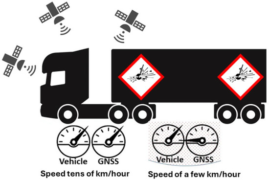The study focused on road transport involving slow-moving vehicles carrying dangerous goods. Based on GNSS measurements, it was demonstrated that standard, widely available GNSS equipment can be effectively used to estimate low vehicle speeds with sufficient precision for safety monitoring purposes.
