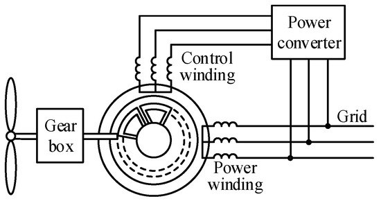 - Han, P.; Cheng, M.; Wei, X.; Jiang, Y. Steady-state characteristics of the dual-stator brushless doubly-fed induction generator. IEEE Trans. Ind. Electron. 2018, 65, 200–210. [Google Scholar] [CrossRef]