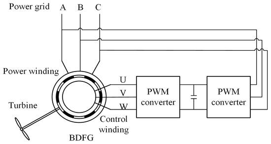 - Zhang, D.; Ma, J.; Yu, N.; Wang, S.; Lu, H. Research on control-winding-current orientation control for grid-connected brushless doubly fed induction generation system. IEEE Trans. Ind. Appl. 2023, 59, 5919–5931. [Google Scholar] [CrossRef]