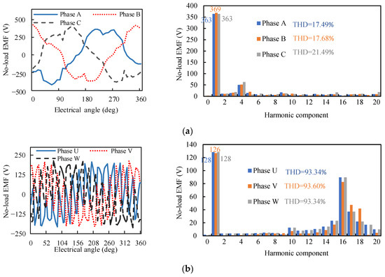 - Zhang, J.; Jiang, Y.; Hu, X.; Xu, S. A brushless doubly fed generator based on permanent magnet field modulation. IEEE Trans. Ind. Electron. 2020, 67, 3505–3516. [Google Scholar] [CrossRef]