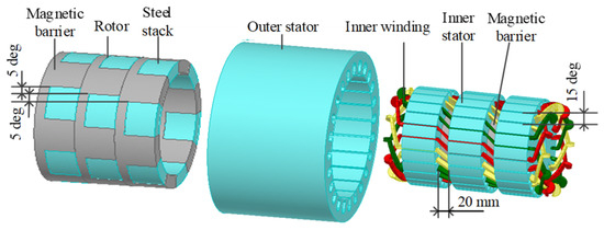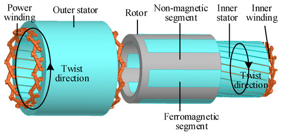 2.1. Topology of Brushless Doubly-Fed Generator with Dual Stators