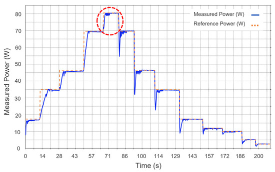 The IC algorithm has been implemented, demonstrating that it satisfactorily follows the assigned power levels, as shown in Figure 6.
