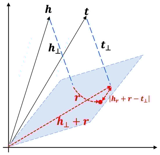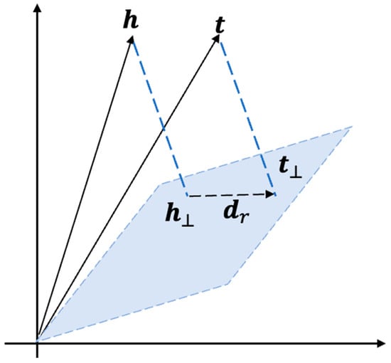 - and denote the projections of head and tail entity vectors onto the relation-specific hyperplane in the TransH model.