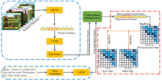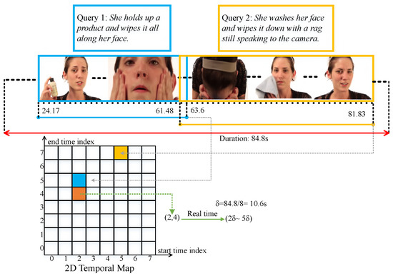 With the rapid development of the Internet, we have entered the era of the Internet of Everything. Recently, massive amounts of multimedia data have poured into people’s daily lives, coming from speech, texts, images, videos, etc. [1,2,3]. Although they bring unprecedented convenience to humans, we face many formidable challenges. How to quickly and accurately retrieve valuable information from plenty of chaotic data, especially video data, has become the mainstream research direction of information retrieval. Video moment localization, one of the most typical topics in multimedia retrieval and the computer vision community [4,5,6], is a critical and challenging problem.