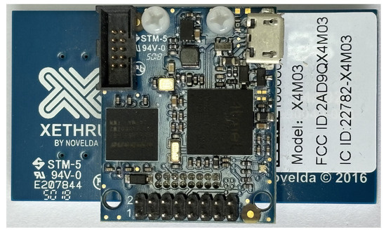 In the experiments, the Xethru X4M03 ultra-wide-band (UWB) radar module (Figure 4) provided by Novelda (Oslo, Norway) is used. This module has a center frequency of 7.29 GHz and a bandwidth of 1.5 GHz, offering a spatial resolution of 0.535 cm within a distance range of 0.2 m to 5 m, and is suitable for acquiring human vital sign signals such as heartbeat and respiration. In this experiment, the radar’s sampling rate is 20 frames per second, with 2 min of data collected each time, resulting in a total of 2400 frames of data. The detailed specifications of the radar are summarized in Table 2.