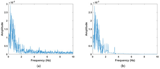 After range-gate selection, the signal is analyzed using SSA. Figure 8 presents the spectral comparison of the signal before and after the SSA process. As can be seen in Figure 8, the signal reconstructed via SSA shows a significant reduction in noise, and the spectral components of the useful signal become more prominent.
